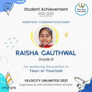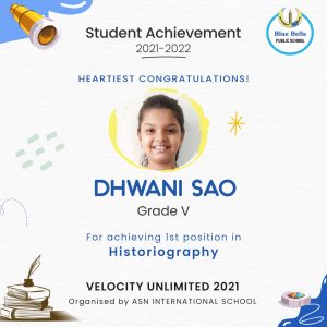 January 10,2022Brahm Dutt Blue Bells Public School MAKES A MARK AT ‘VELOCITY UNLIMITED 2021’ ORGANISED BY ASN INTERNATIONAL SCHOOL “The harder the effort, the more glorious the triumph." It was once again a...